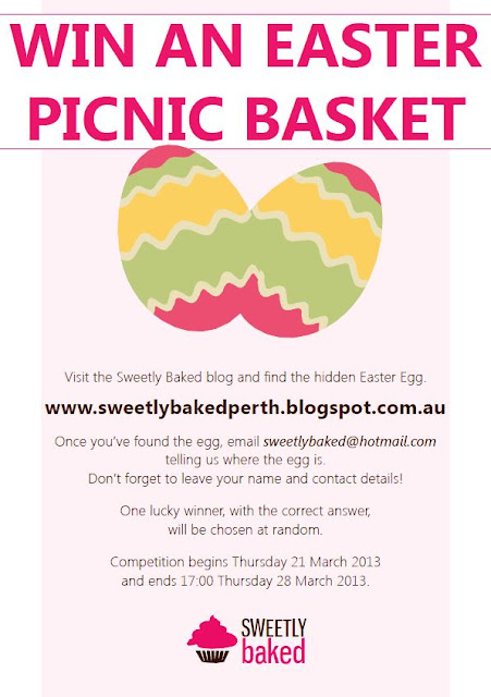Get looking and you could win this easter basket FILLED with baked treats and Easter Goodies. Just in time for the long weekend. (I promise, it looks a little bare now, but there will be delicious goodies in that basket! I can’t make treats a week before – otherwise they’ll go bad!!!)