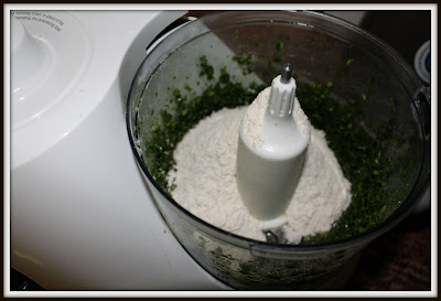 Put 2/14 cups of the flour/cheese mixture into the food processor. Set the rest aside for the spinach mixture.