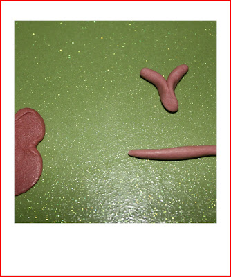Turn over, and roll a small amount of light brown for his mouth area. Attach with a little water.